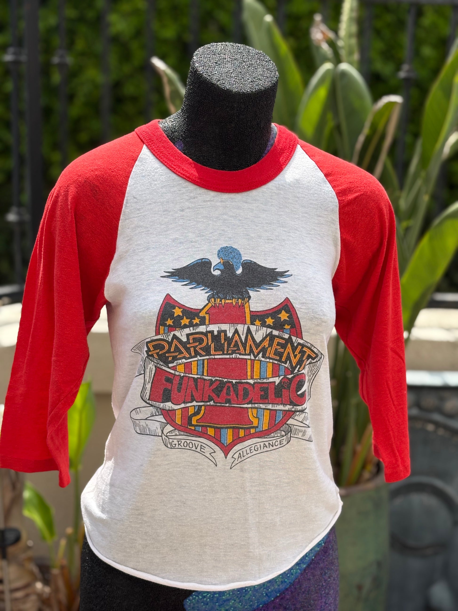 Style: double-sided The World's Greatest Funk Festival Jersey t-shirt. Front features the P-Funk One Nation Under A Groove shield. Back features the tours line-up- Parliament, Funkadelic, Bootsy, Zapp, Sly Stone & Sweat Band.